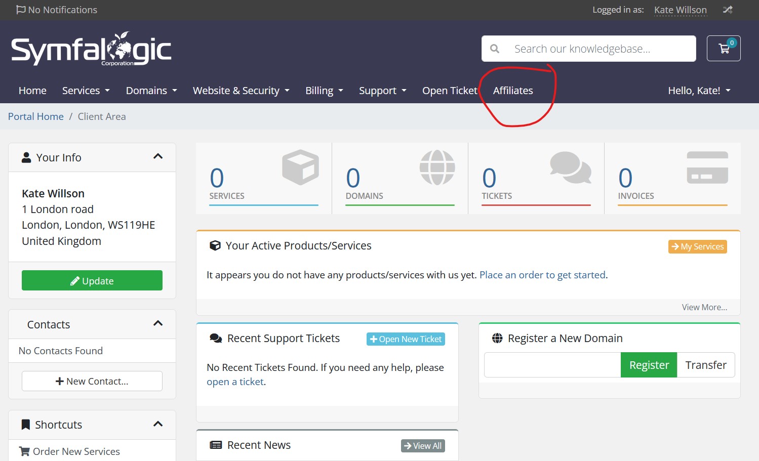 You need registration our client portal: https://customer.symfalogic.com/register.php